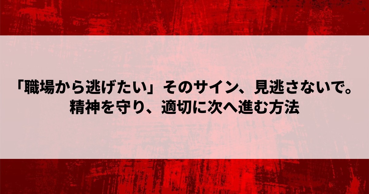 「職場から逃げたい」と感じることは、自分自身を守るための自然な反応です。そのサインを見過ごさず、心の声に耳を傾けることが、より健全な未来を築くための第一歩となります。