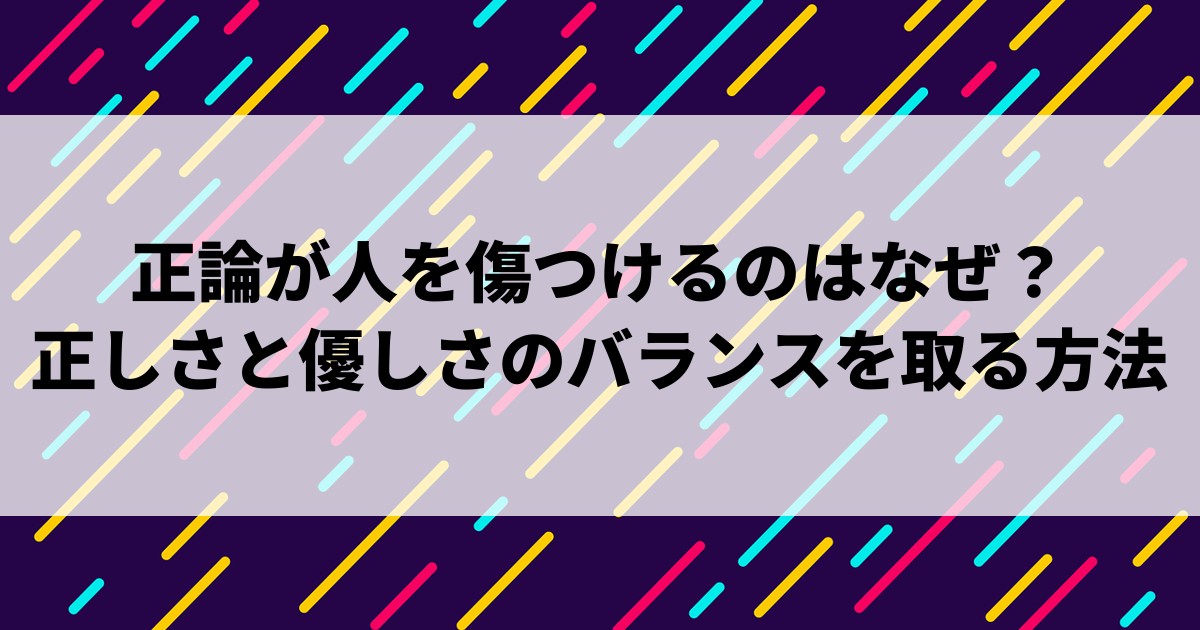 正論が人を傷つけるのは、それが感情や状況を無視し、一方的な言葉になってしまうためです。本当に大切なのは、正しさを伝えることではなく、相手との信頼関係を築き、共に課題を解決することです。まずは相手の心に寄り添い、優しさを土台にすることで、あなたの「正しさ」は、初めて相手の心に届く力を持つでしょう。